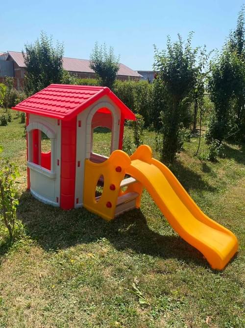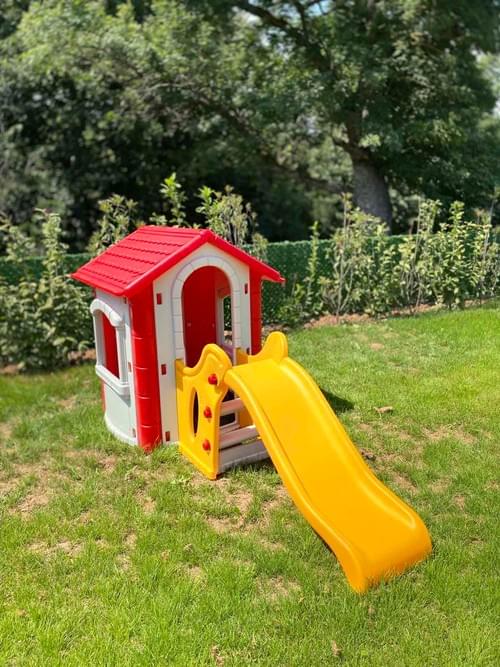 Kombinimi i shtëpisë me topoganin ofron më shumë mundësi loje – nga rrëshqitjet argëtuese te lojërat imagjinative brenda shtëpisë. Hapësira është projektuar në mënyrë ergonomike, duke ofruar komoditet dhe siguri për fëmijë të moshave të ndryshme. Montimi është i thjeshtë, dhe materiali i lehtë e bën të lëvizshëm dhe praktik për çdo ambient familjar.